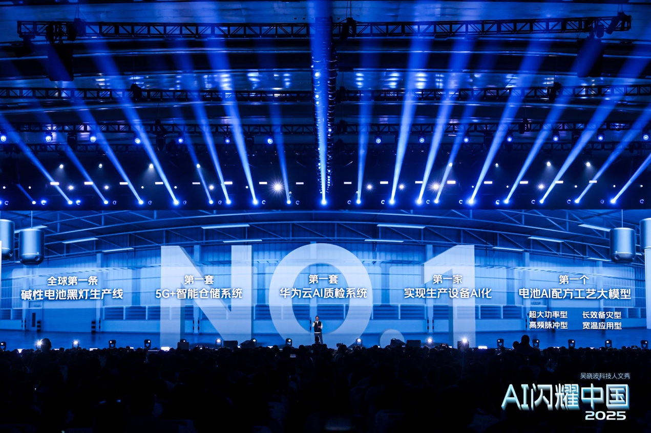吴晓波在演讲中重点提及的双鹿电池“五个第一”,被视为其制造能力升级的集中呈现:全球第一条:碱性电池黑灯生产线G 智能立体仓储系统;业内第一套:华为云 AI 质检系统;业内第一家:实现生产设备 AI 化;业内第一个:电池 AI 配方工艺大模型。